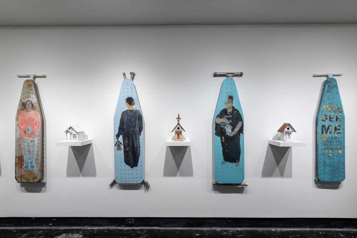This is about being seen. Seeing the women in the shadows. In my eyes the ironing board resembles a badge of honor. A medal for the women in the shadows. A medal of honor that so many Black women, and women of color have earned, as they had to take care of the families of others before they could take care of their own. As a physical object the ironing board is a sacred symbol that represents the back breaking work women have endured simply for survival. This installation examines family, community, and most importantly Black womanhood.