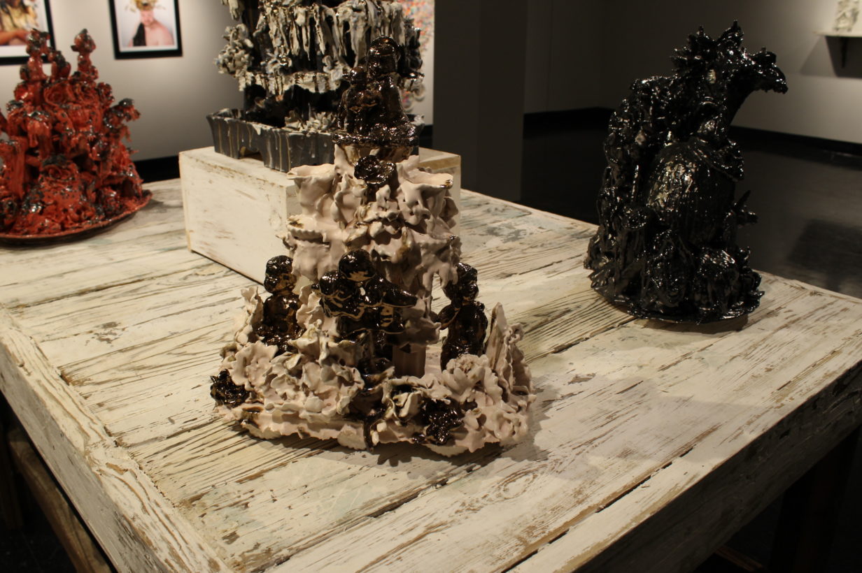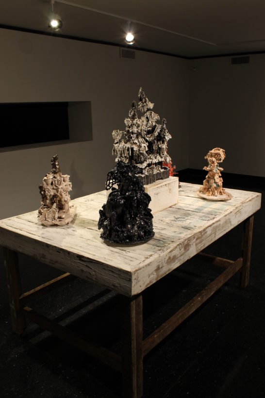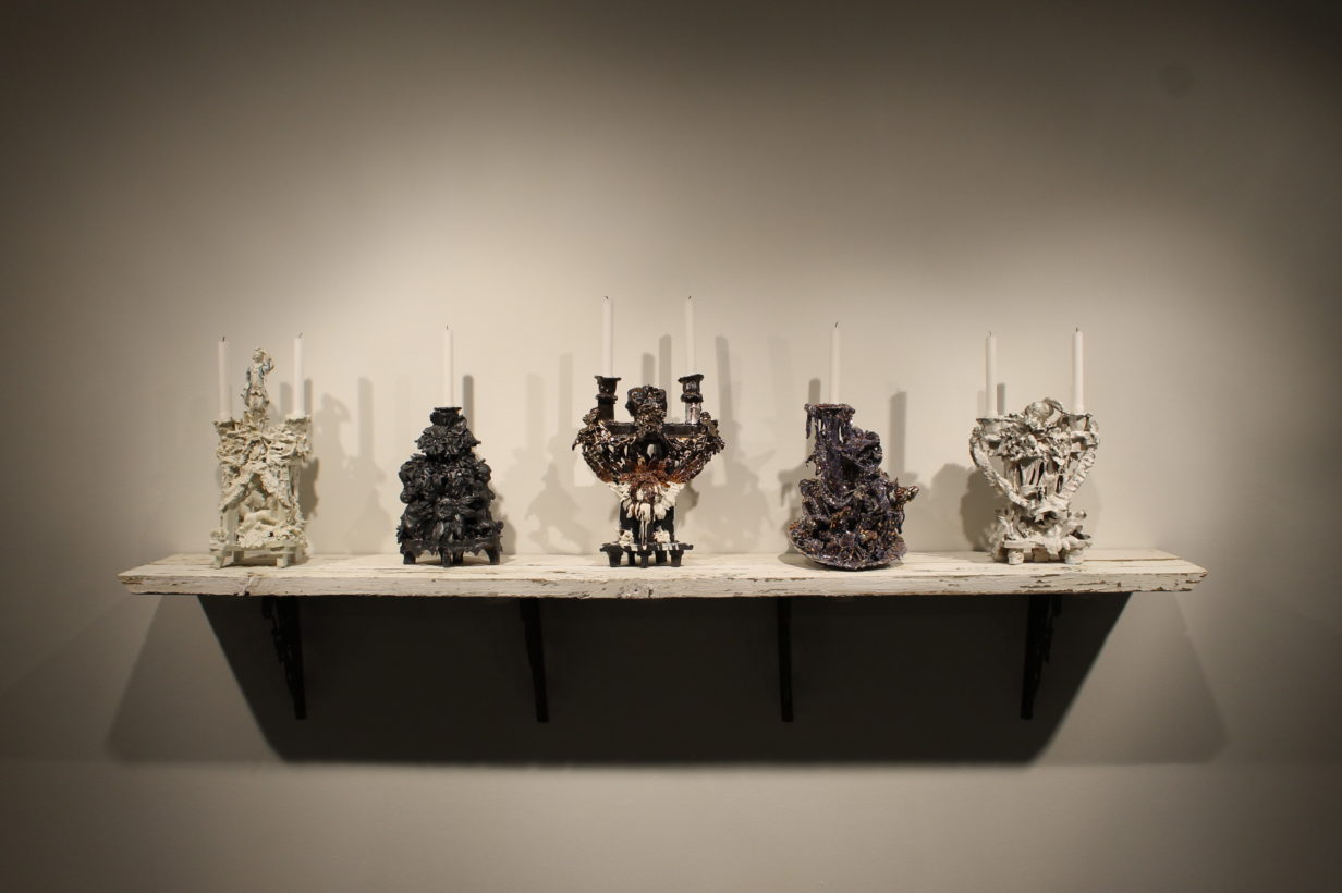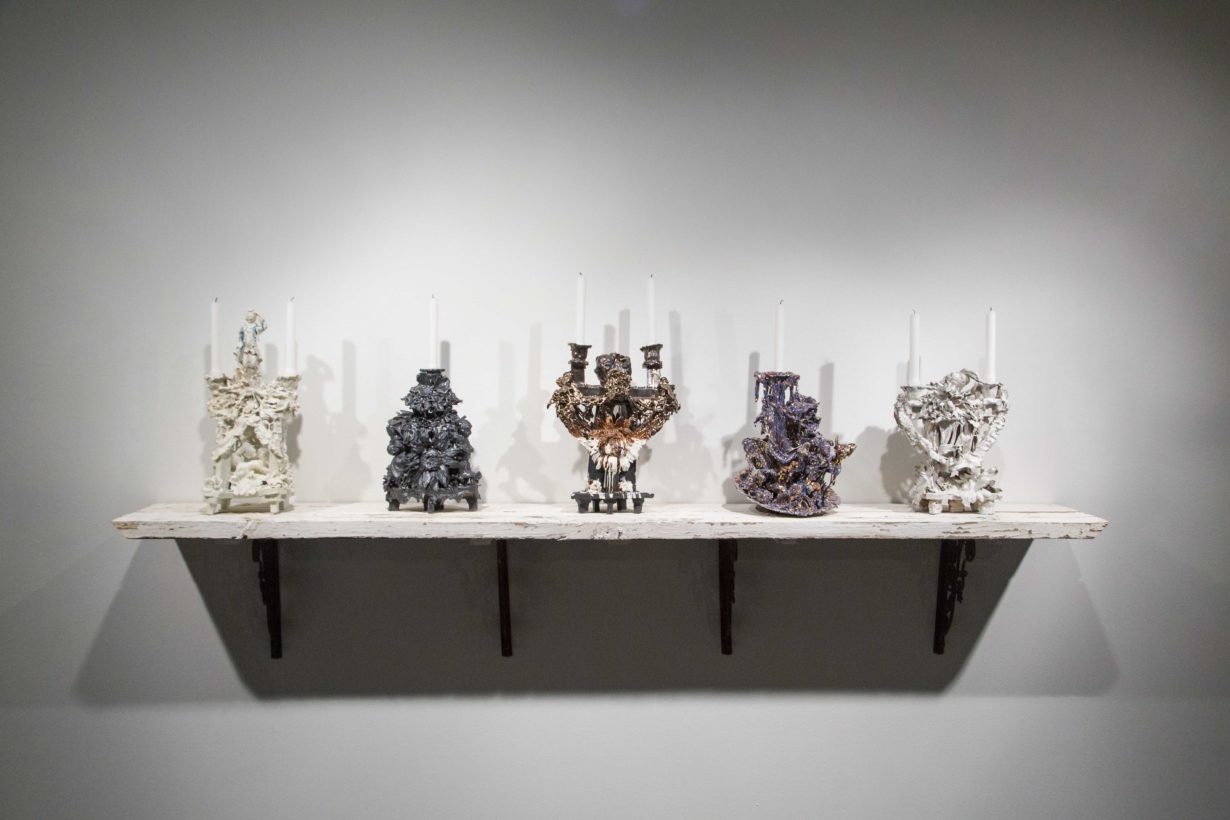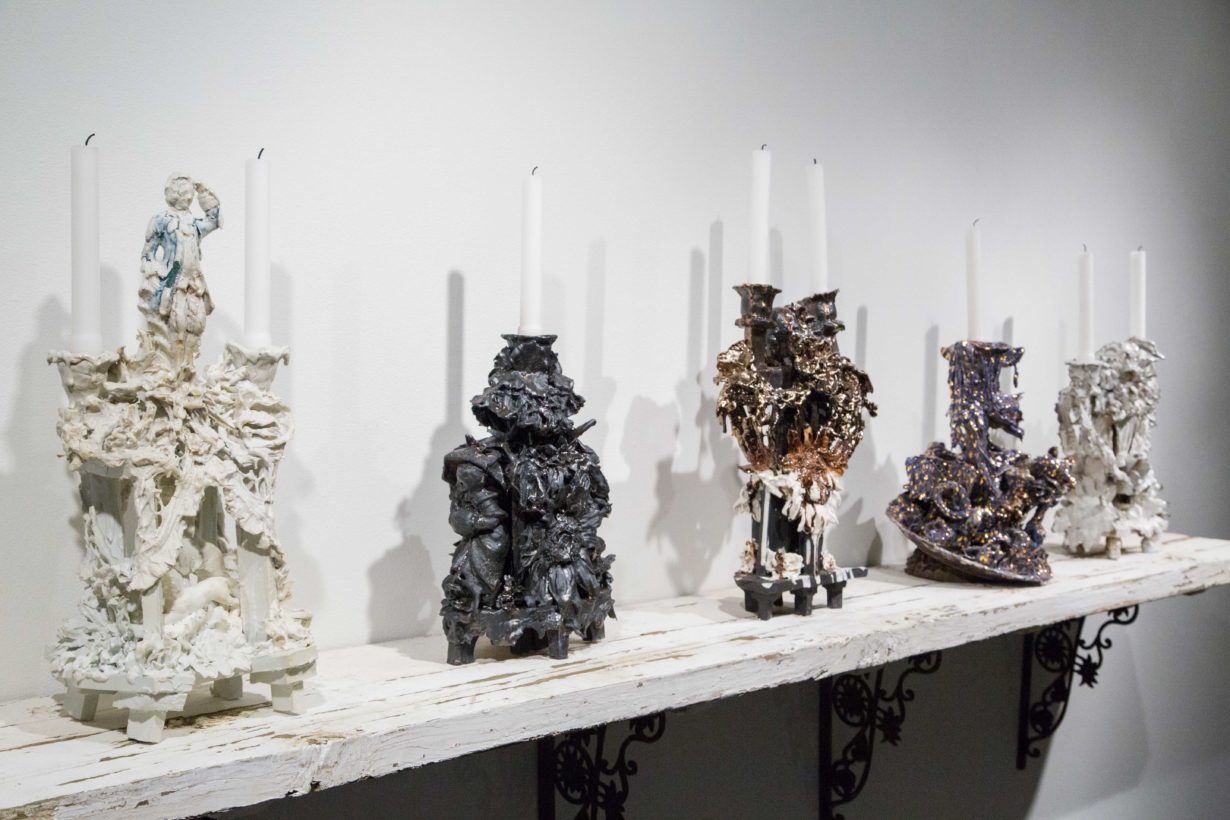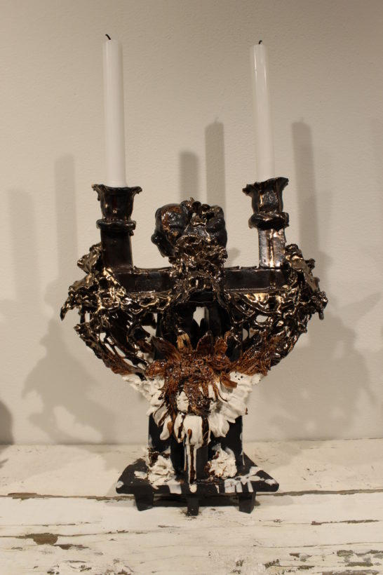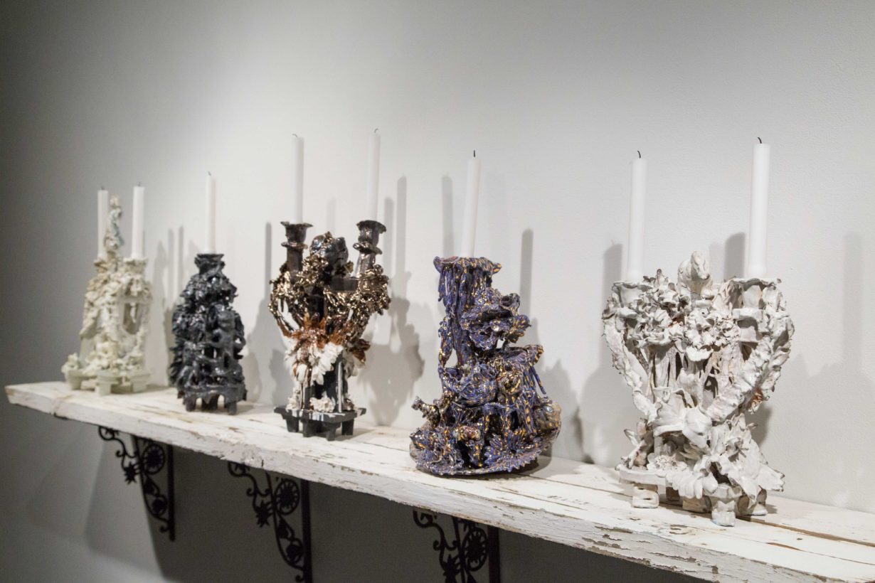 In this exhibition, With Wild Abandon, Anthony Sonnenberg tackles the topic of consumption and consumerism. Ranging in media from porcelain to performance the works in the show draw from an equally diverse range of sources such as the still life, the rococo and Greek myth. Unable to decide whether they are warnings or advertisements, these works function as markers along the artist’s path to an understanding of indulgence and its effects on humanity’s past, present, and future as well as his own body. Throughout the journey there is always the question; when we allow ourselves to enjoy pleasure do we also sow the seeds of our own destruction? And if so, is it better than no pleasure at all?