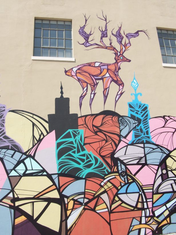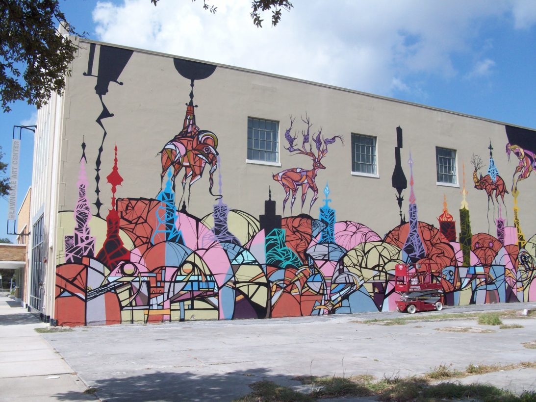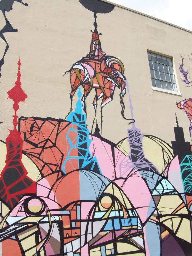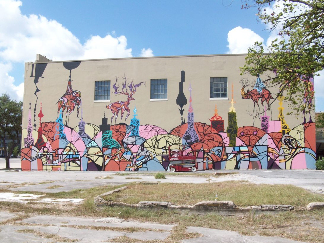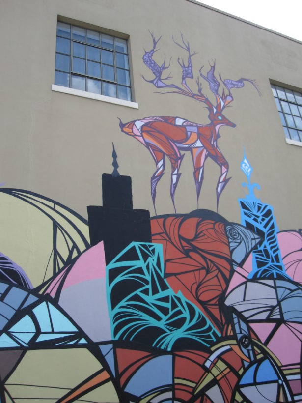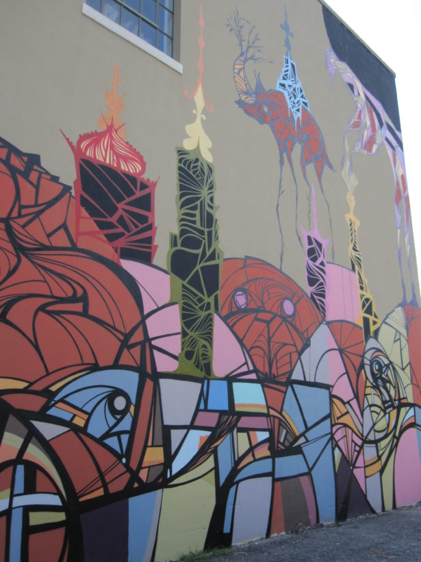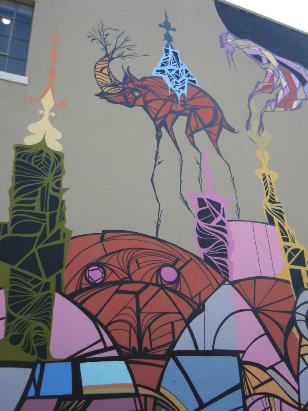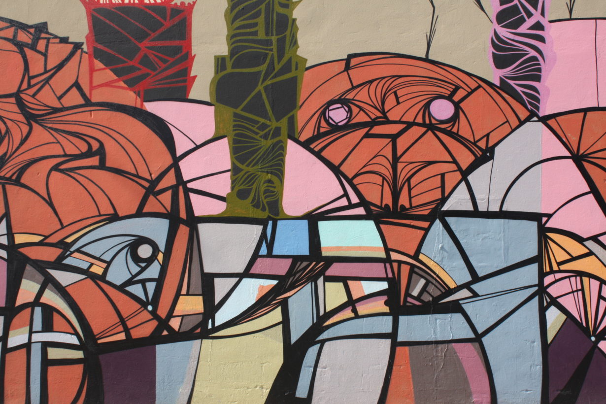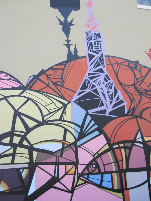 Anguilu explains, “One my favorite parts of painting outdoors on buildings is the scale and the access everyone has to the art, this is not for one space and one crowd, this is for everyone to enjoy.”