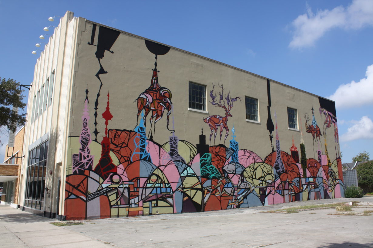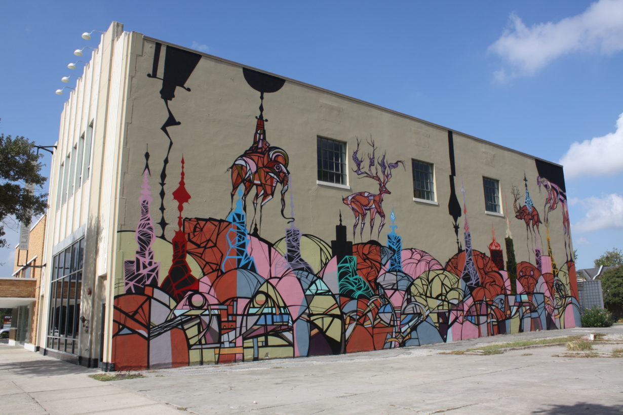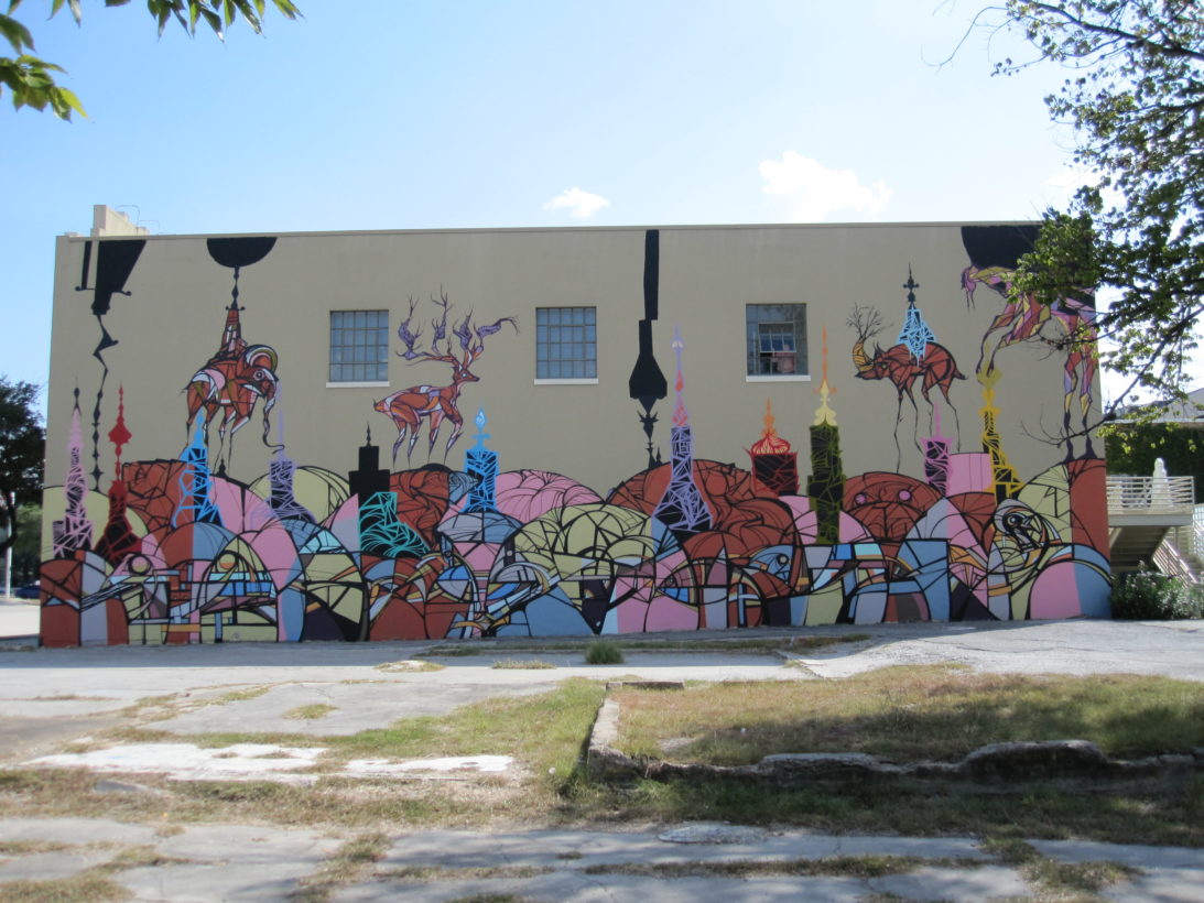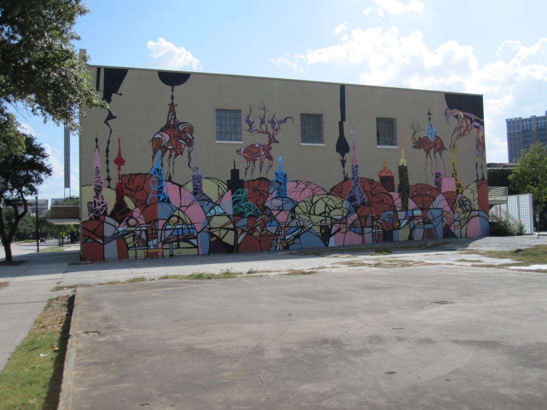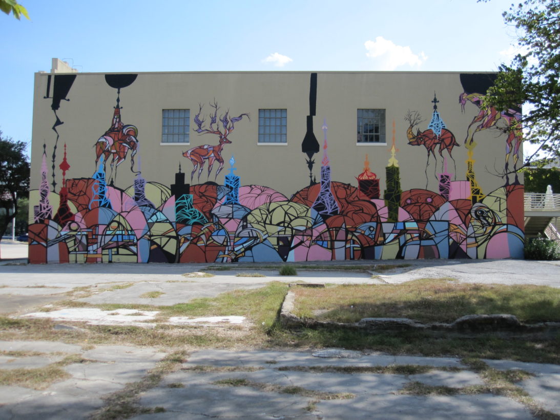 For the 2011-2012 season artist Daniel Anguilu will transform Lawndale’s north exterior wall into a mural on view through June 2012. Anguilu’s work can be found throughout Houston, including locations in the East End and most recently on Midtown’s MHMRA building. Anguilu’s style is deeply inspired by his Mexican heritage and mostly manifests itself as large-scale murals. Anguilu uses angular and organic forms to construct animals and other shapes, often drawing from Aztec influences. Anguilu aims to take these images and reinvent them in his own style that people can begin to recognize.