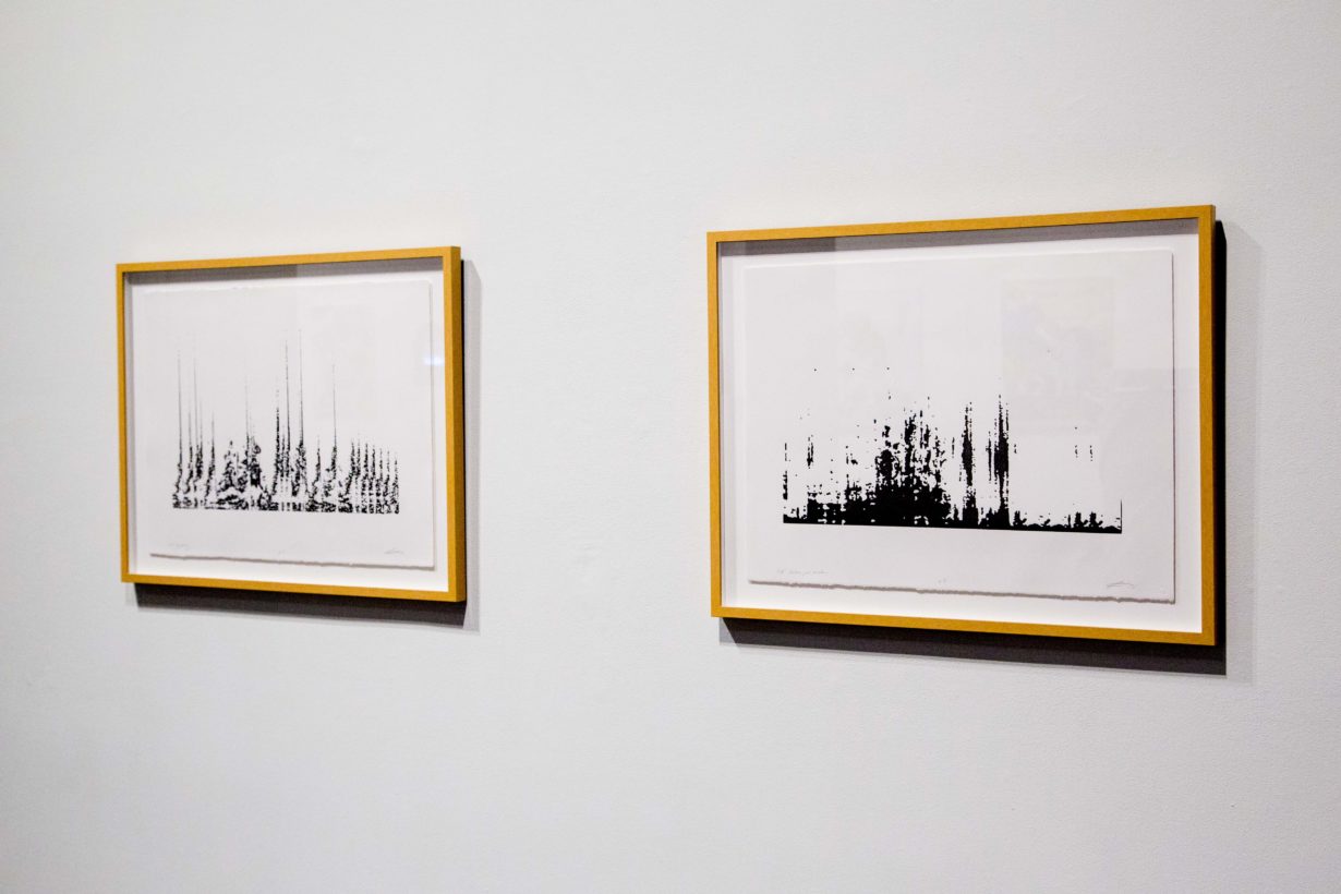 Lina Dib presents new works on paper, wood, and air. Still preoccupied by the archive and an ecology of sound, Dib’s works point to the fact that history (occasionally read as motion) has a medium. Her printed soundscapes remind viewers that sound has a shape, a topography, and her interactive pool of sound allows viewers to navigate an invisible watery landscape. Finally, a kinetic, slow spinning sculpture pushes the sound of the sea around the gallery. Reminiscent of a lighthouse, this sound-structure or beacon delineates a sea rather than land.