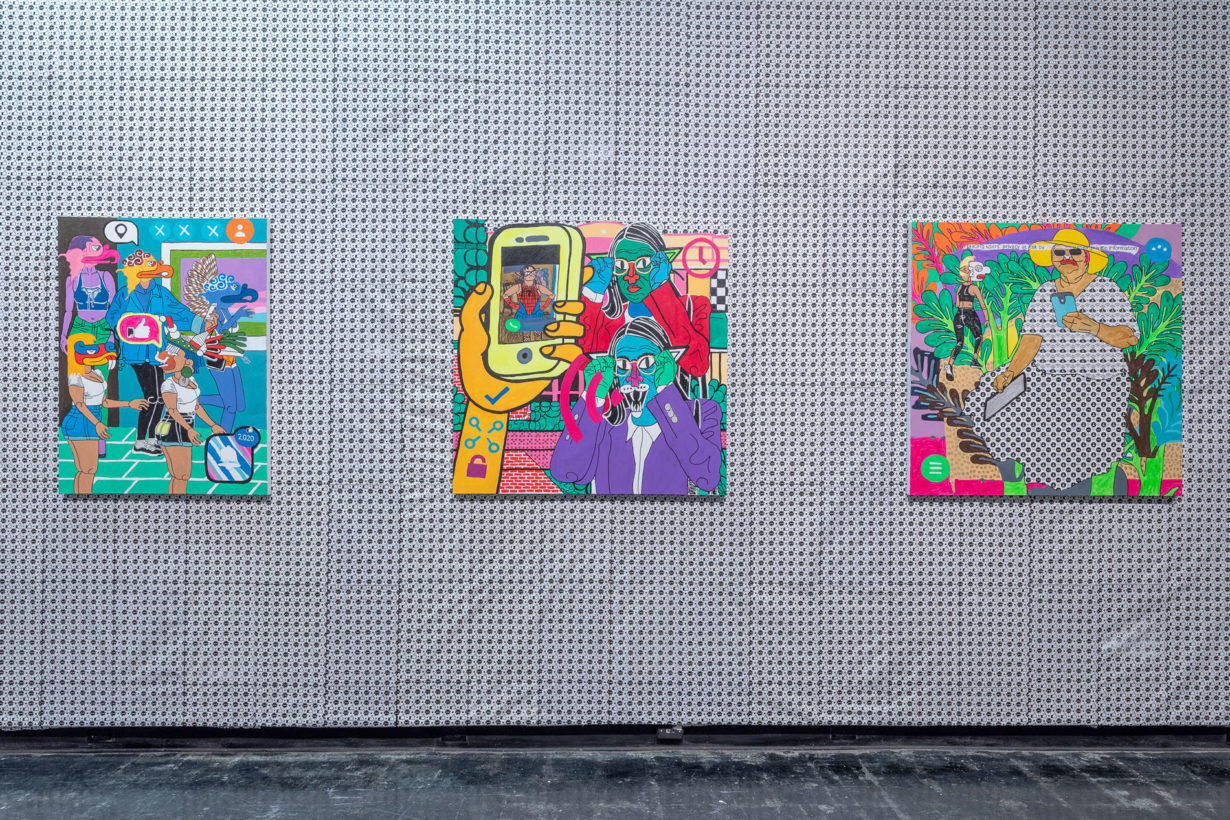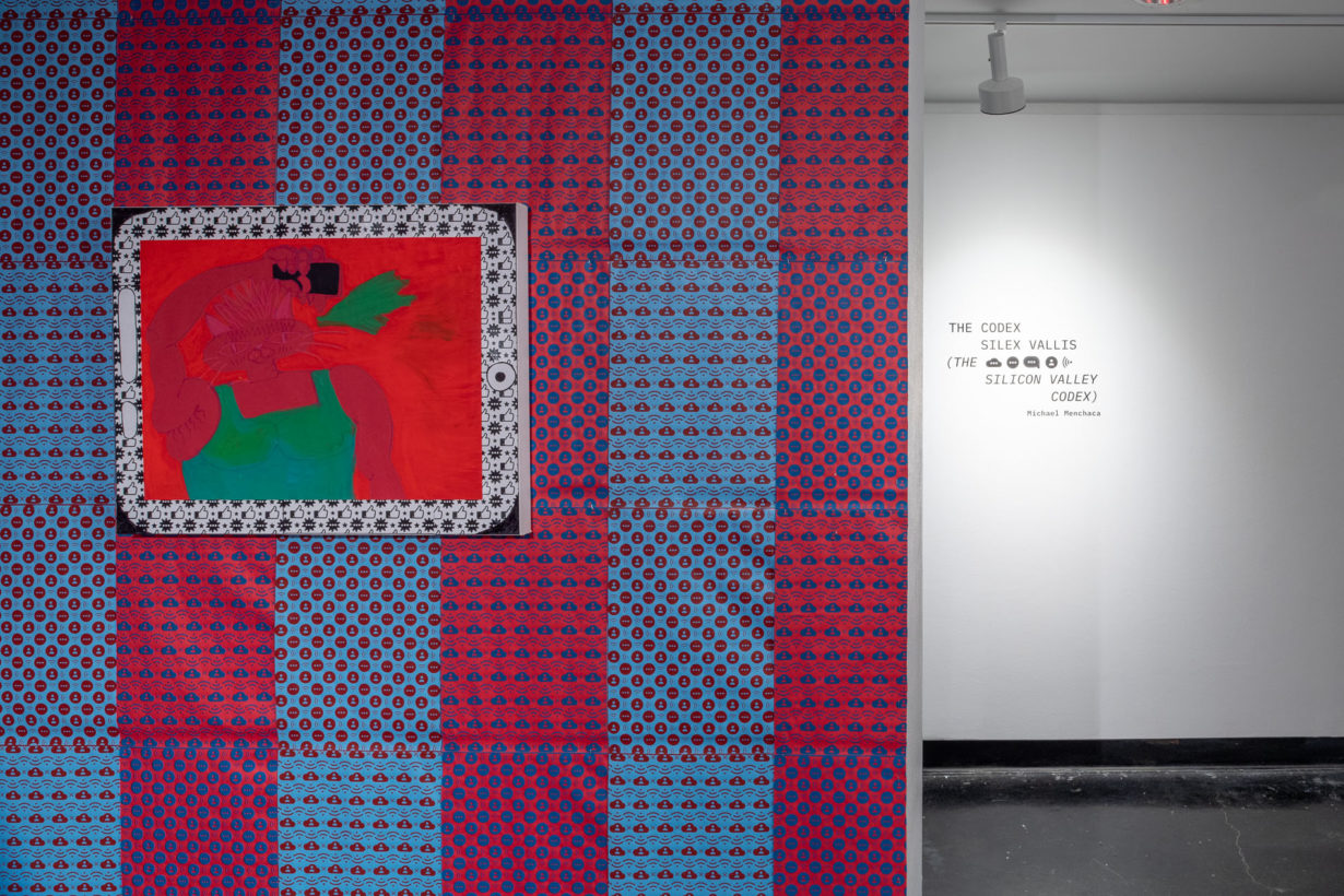 In The Codex Silex Vallis (The Silicon Valley Codex), Michael Menchaca visualizes how the growing tech industry—largely based out of Silicon Valley—is infiltrating traditional Latinx family customs in the United States. In large scale, Menchaca explores the imagery and themes from his eponymously-titled series through a variety of media, including a site-specific wallpaper installation, new paintings, drawings, screen and digital print, videos, and virtual reality.