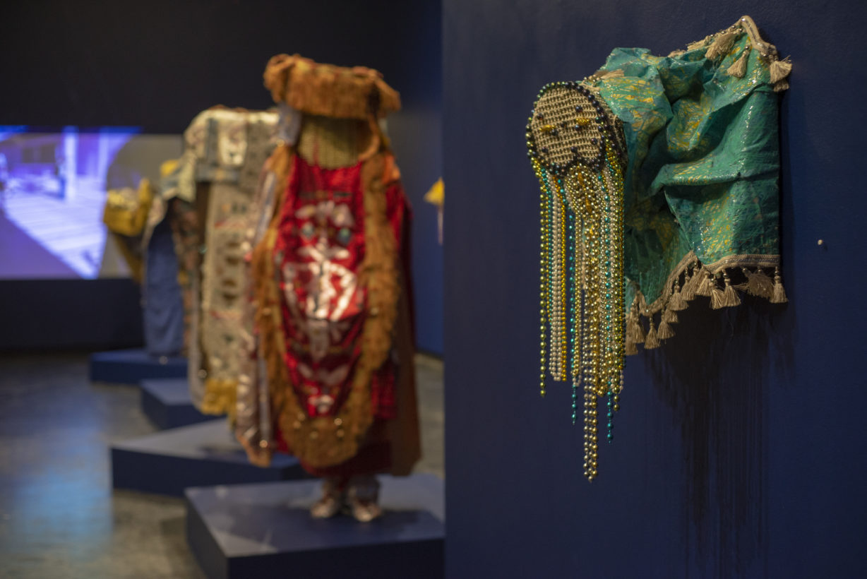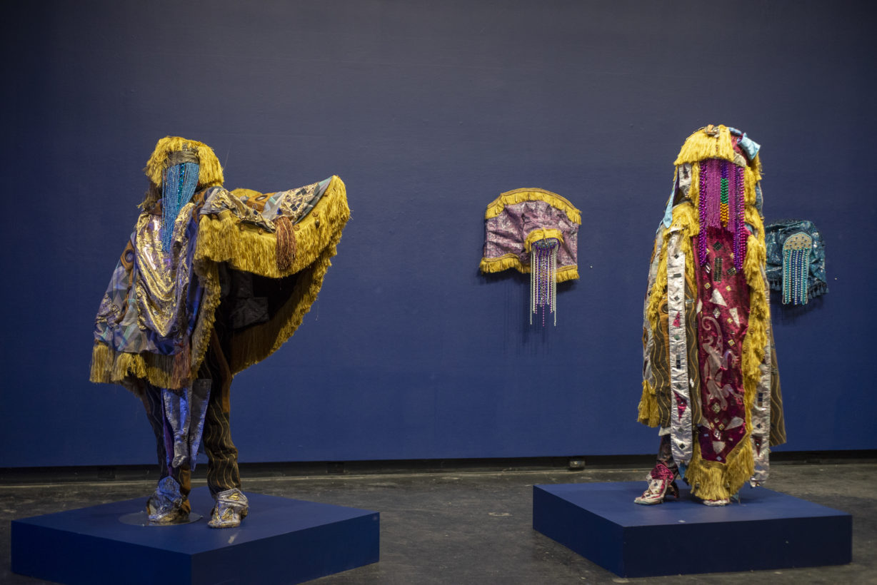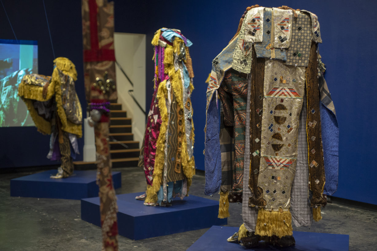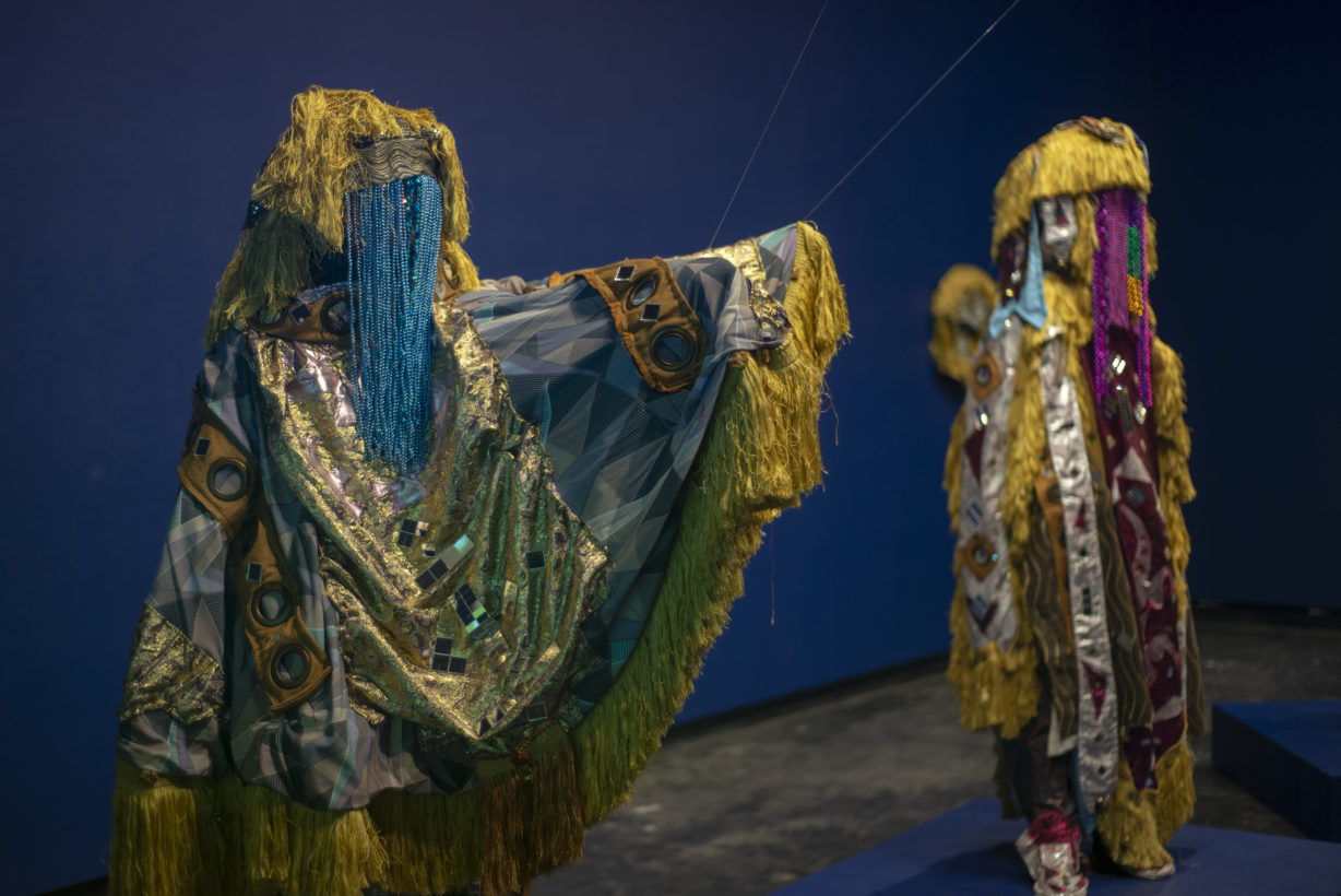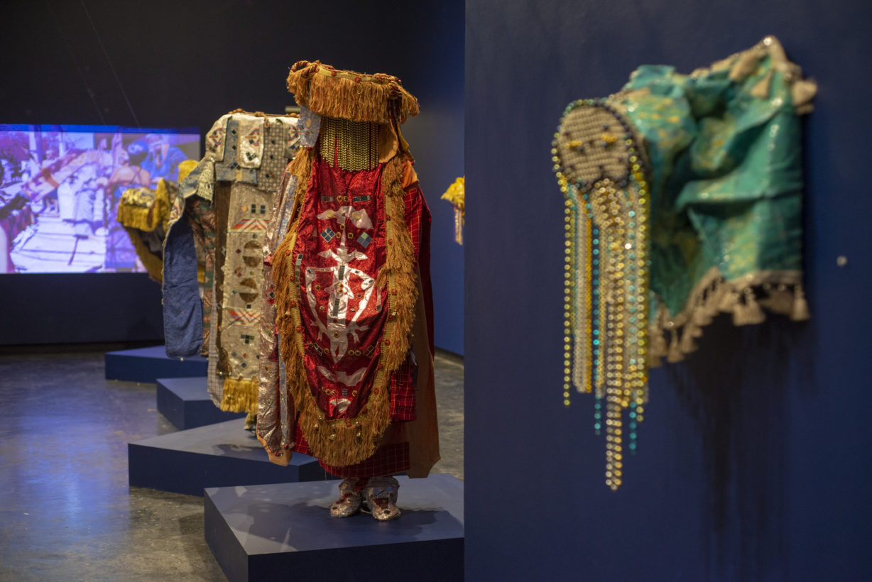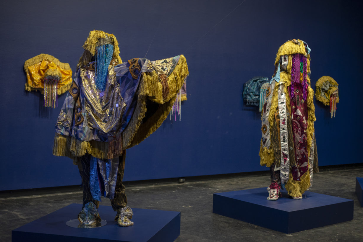 This project involves the creation of masquerade costumes and masks from traditional materials, incorporating symbols and patterns from cultures around the world including, but not limited to, Ghana (Adinkran), Nigeria (Uli, Arewa), South Africa (Ndebele), Cameroon (Bamuleke), Australia (Aboriginal), New Zealand (Mauri), and New Mexico (Pueblo).