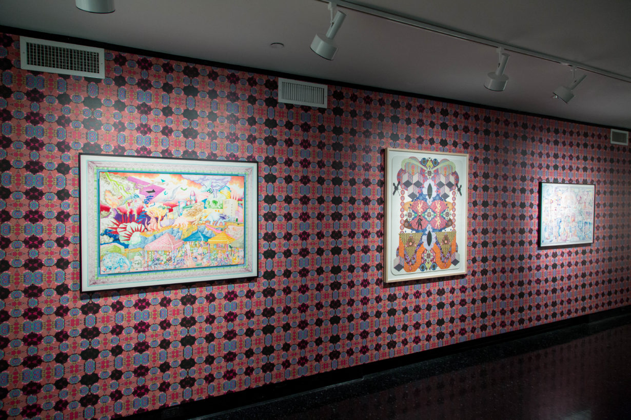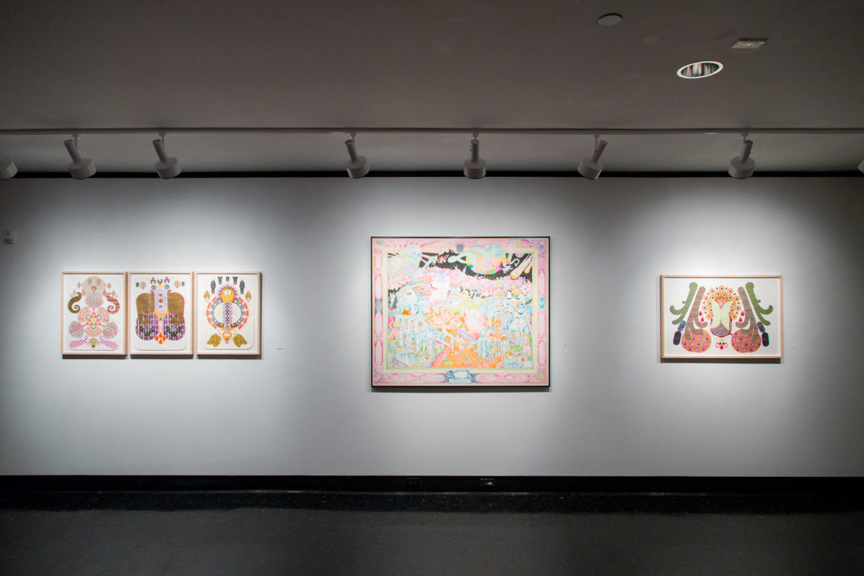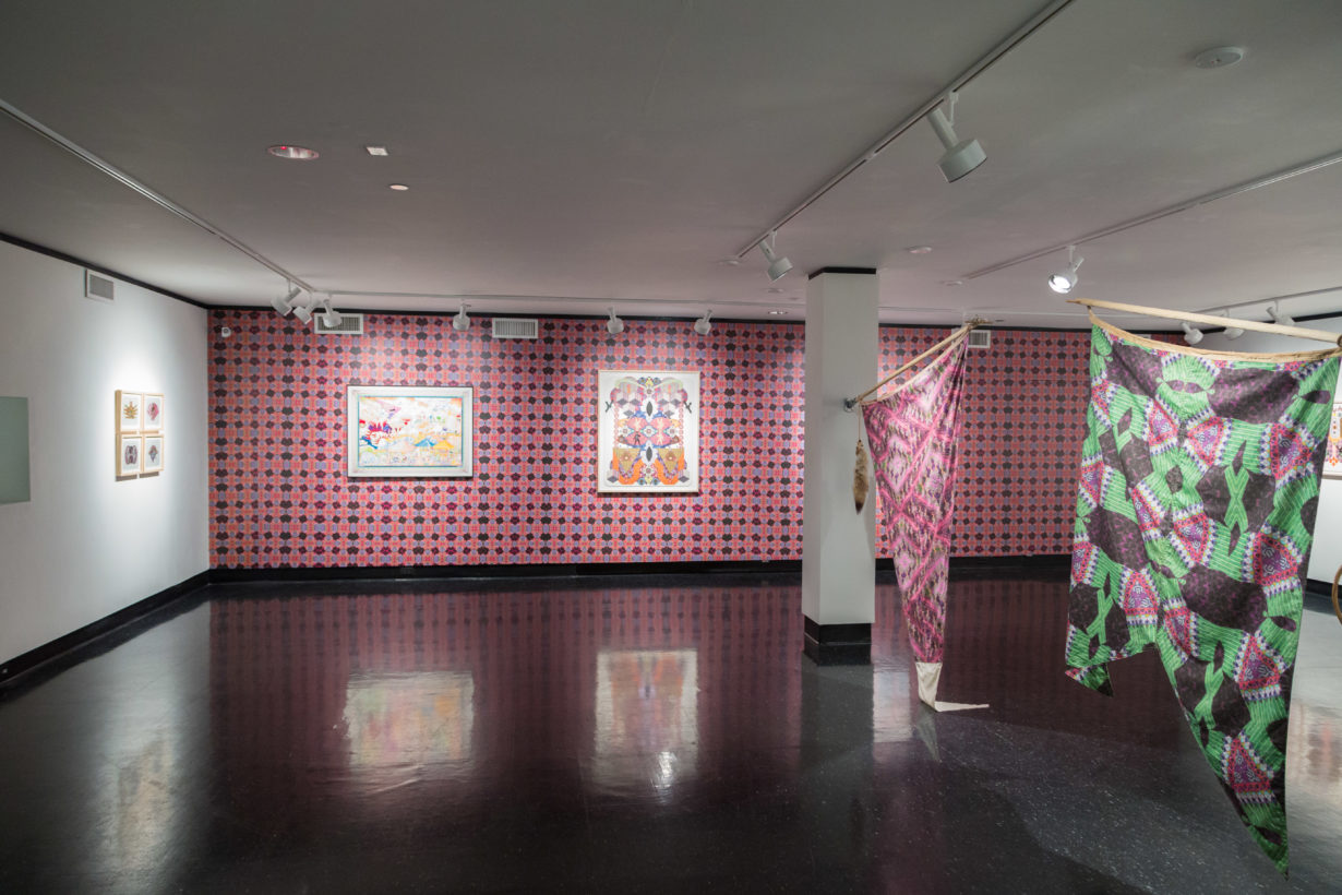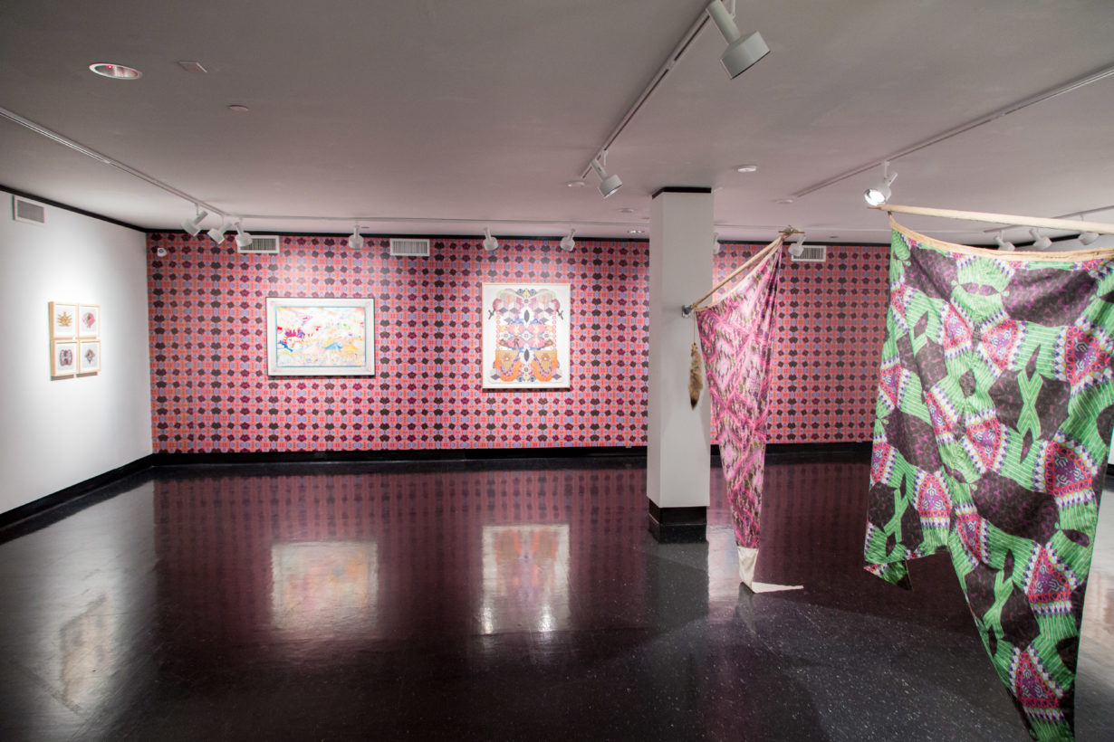 With an arsenal of 0.40-millimeter pens, Christopher Wallace and Samantha Persons tackle notions of narrative, pattern, and obsession. Surface Dwellers consists of drawings, wallpaper, sculpture, and nostalgia, with a dash of science-fiction. Persons and Wallace create non-hierarchical drawings using color as a means of collage and differentiation. The eye becomes visual saturated from the artists’ kenophobia. Looking to the history of printmaking—particularly Dürer, Goya and Schirmer—Wallace narrates such themes as nostalgia, technology, myth and Internet culture. Using hand-drawn pattern and symmetry Persons creates the illusion of mechanical production, highlighting topics of feminism, textiles and gender/queering. Embracing the empirical flatness of paper, Persons and Wallace question what it means to be terrestrial beings trapped in a self-contained starship traveling 1.3 million miles an hour through space.
